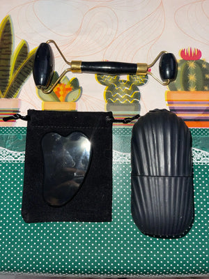 The three-piece ice roller and gua sha deliver cooling, massage, and sculpting to reduce puffiness and boost skin tone for visible daily improvements